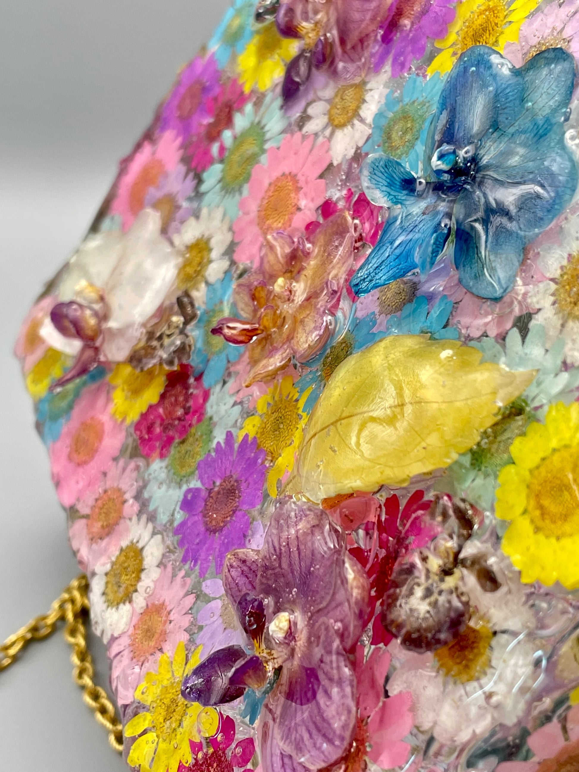 One-of-a-Kind Floral Designer Bag β Real Orchids & Dried Flowers in UV Resin
